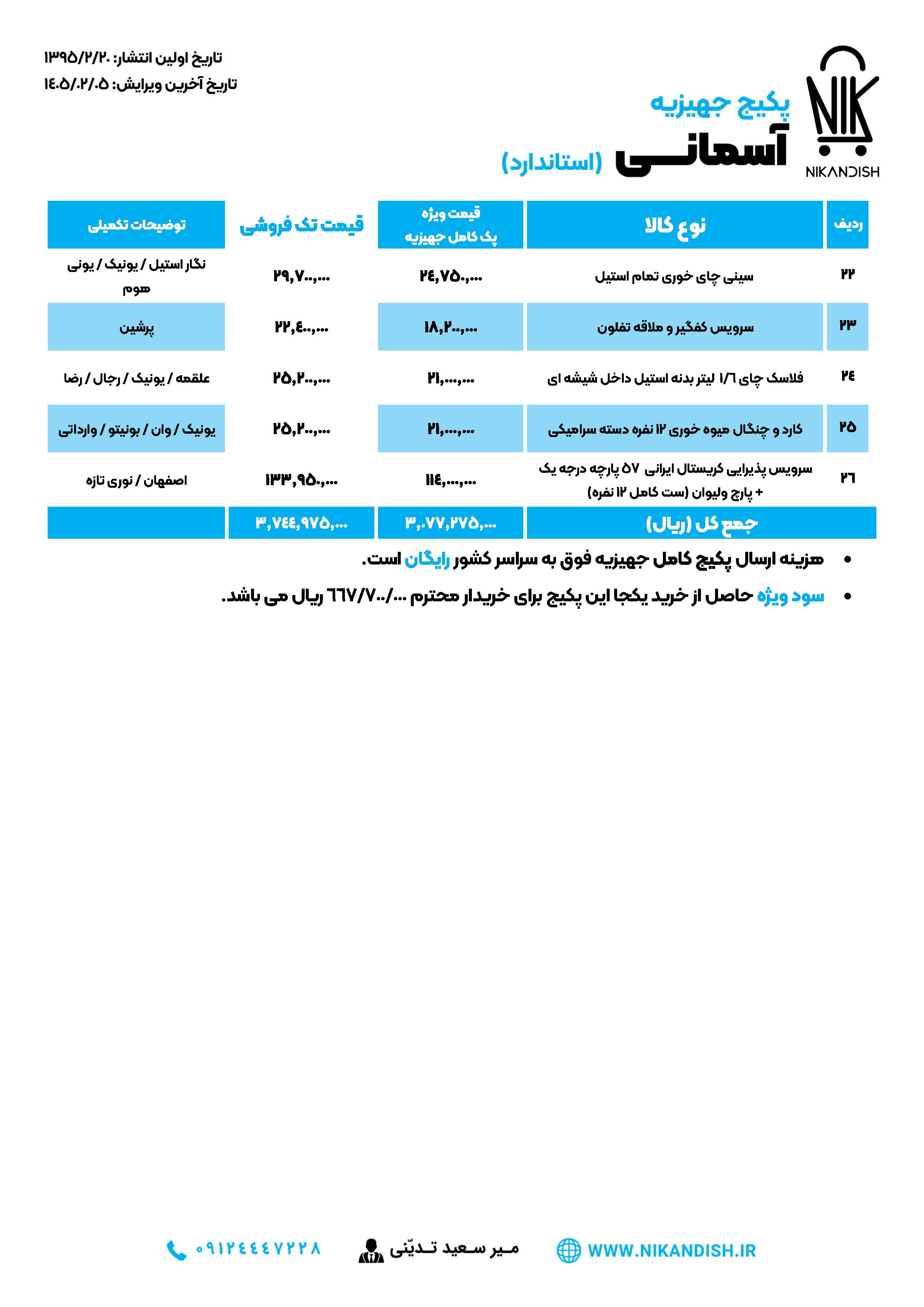 نقد و بررسی پکیج جهیزیه آسمانی (استاندارد)