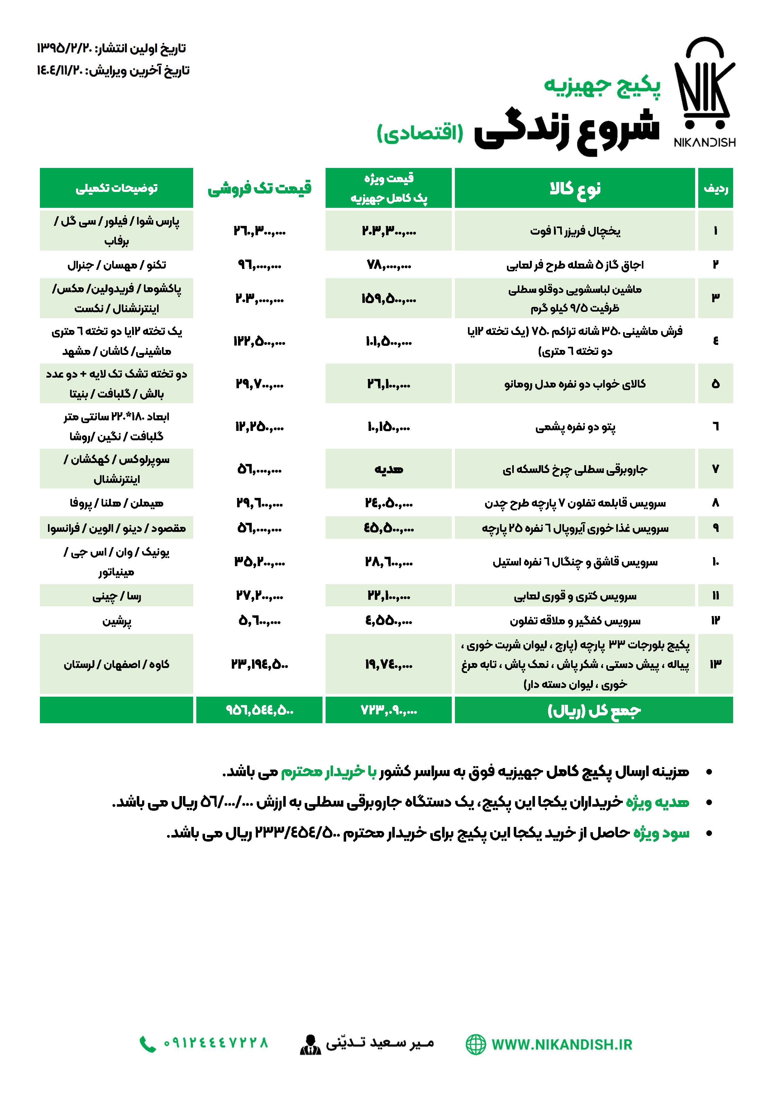 - برای دانلود فایل PDF آخرین نسخه پکیج های جهیزیه نیک اندیش به تاریخ 1404/11/20 اینجا کلیک نمایید.