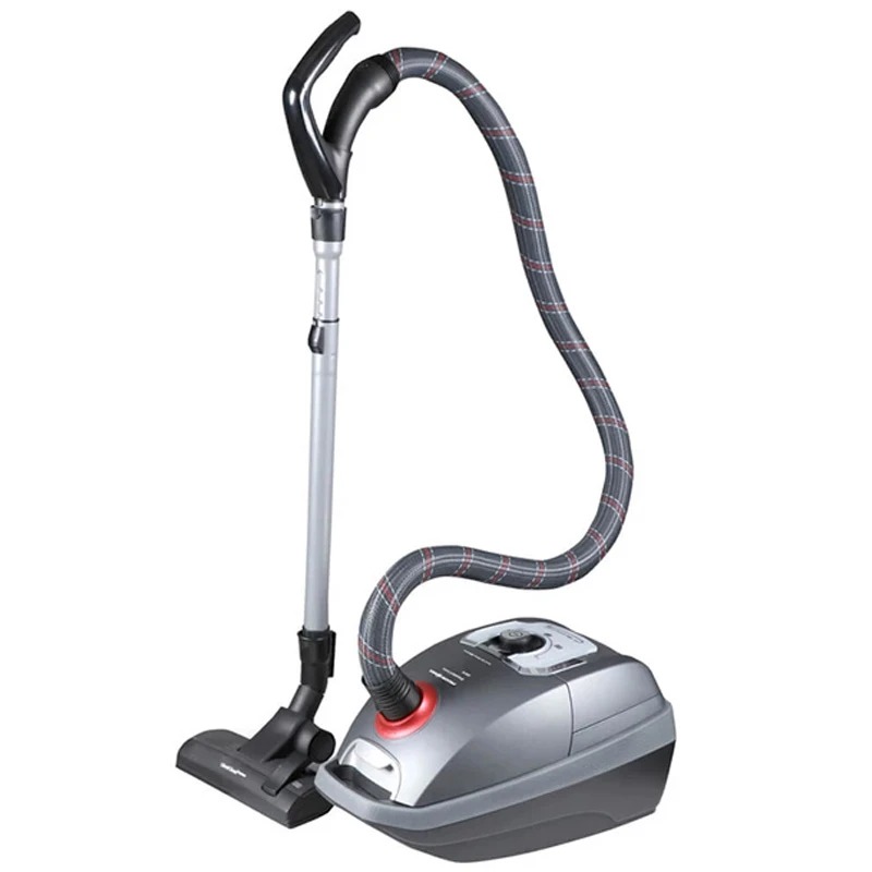 مدل PVC 5125 G از طراحی زیبا، مدرن و کاربرپسند برخوردار است. بدنهای مقاوم با نوار سیلیکونی محافظ دور دستگاه دارد که از آسیبدیدگی هنگام برخورد با دیوارها و مبلمان جلوگیری میکند. با ابعاد ۴۸۰×۳۲۰×۲۷۵ میلیمتر و وزن ۷.۷ کیلوگرم، این دستگاه علاوه بر استحکام، حمل و جابهجایی آسانی دارد.این جاروبرقی دارای سه چرخ روان و مستحکم است که حرکت آن را روی انواع سطوح سادهتر کرده و از ایجاد خط و خش روی کف جلوگیری میکند. لوله تلسکوپی فلزی نیز امکان تنظیم ارتفاع را برای کاربران فراهم کرده و باعث راحتی بیشتر در هنگام استفاده میشود. همچنین، این مدل دارای کیف مخصوص سریهای فرش، سرامیک، موکت، مبل، پرده و درزگیر است که به سازماندهی و نگهداری بهتر قطعات کمک میکند.یکی از ویژگیهای قابلتوجه این مدل، قابلیت تنظیم قدرت مکش است که به کاربران اجازه میدهد بسته به نوع سطح، قدرت مکش را افزایش یا کاهش دهند. این قابلیت برای جارو کردن سطوح حساس مانند پردهها یا فرشهای نازک بسیار کاربردی است.همچنین، وجود سریهای مختلف برای نظافت سطوح متنوع، این مدل را به گزینهای ایدهآل برای تمیز کردن گوشهها، مبلمان، پردهها، سطوح سخت و فرشها تبدیل کرده است. کیسه ۶ لیتری قابل تعویض نیز ظرفیت بالایی برای جمعآوری گردوغبار و زباله دارد و نیاز به تخلیه مکرر را کاهش میدهد.