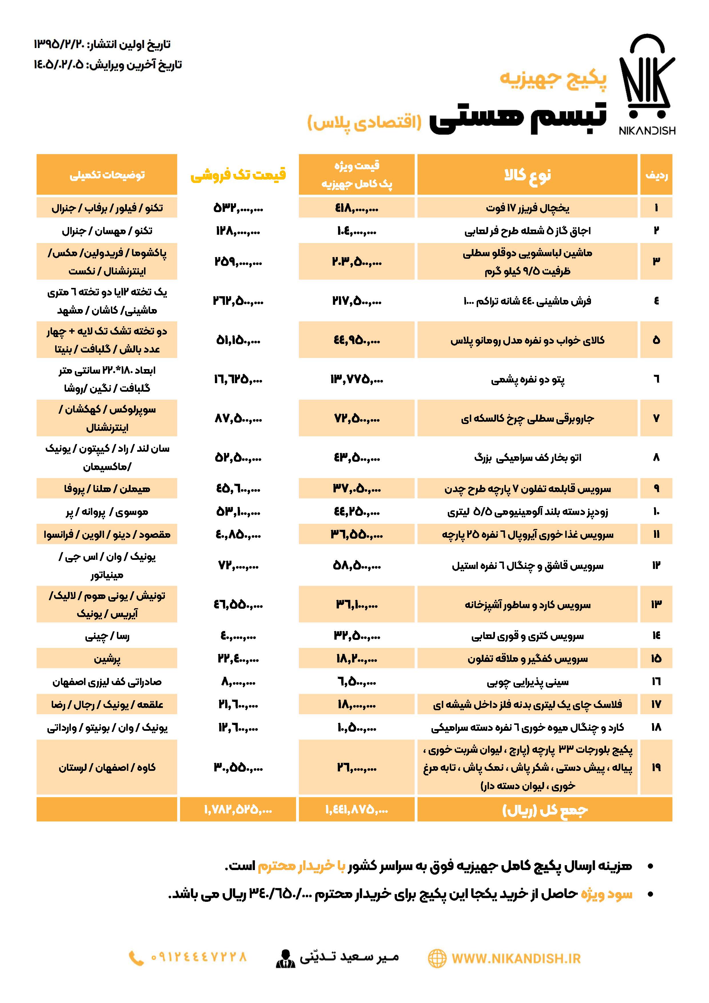 نقد و بررسی پکیج جهیزیه تبسم هستی (اقتصادی پلاس)